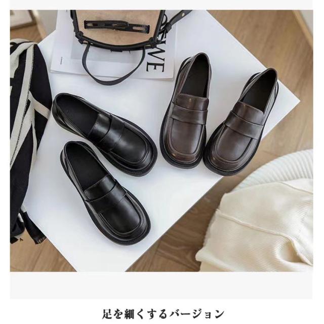 | シンプルでスタイリッシュなレディースローファー 靴の形はクラシックなラウンドトゥです ヒールの高さは3cmで履きやすいです 足を細くするバージョン | |