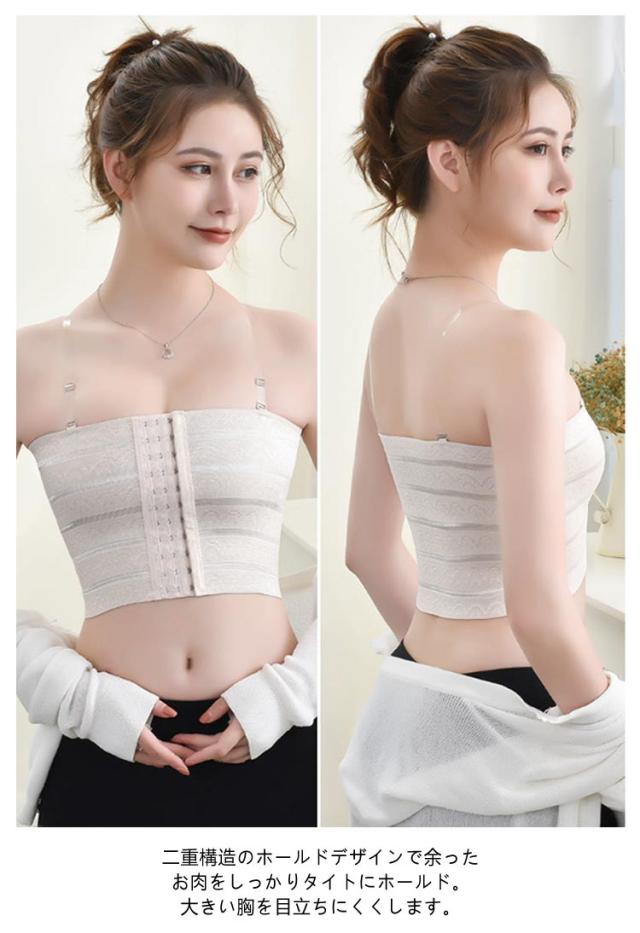| 胸つぶしインナーでバストを綺麗な平らに♪ 見えないストラップデザイン 【2枚セット】 【大きな胸を小さく見せる 胸つぶしインナー!】 二重構造のホールドデザインで余ったお肉をしっかりタイトにホールド。 大きい胸を目立ちにくくします。 3段階の調節が可能なフロントホック。ホールド力があり、調節の自由度も高いのが特徴です。 丈夫で摩擦に強い縫製だから耐久性◎ 柔らかく肌に優しい生地を採用しています。汗をよく吸収し乾きやすいので快適な着心地が長時間続きます。 ・フロントホック式 ・チューブトップ型 ・肌への摩擦が少なく着脱も簡単でストレスフリー ・胸を小さく平らに見せ運動時の揺れを抑える ・優れた伸縮性と肌触りで長時間の着用でも快適 ・吸汗・速乾柔らかく肌に優しい生地 | |