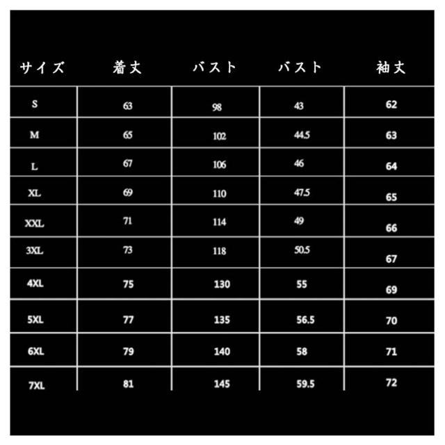 | サイズ | S M L XL 2XL 3XL 4XL 5XL 6XL 7XL |