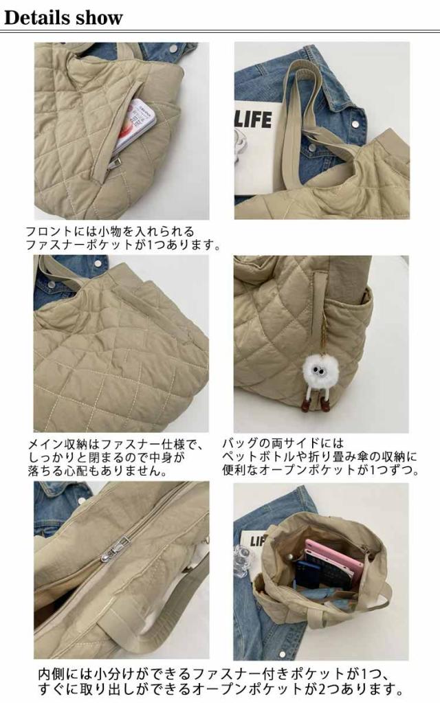 肩掛けバッグ 通学 キルティングバッグ トート 軽量 トートバッグ ファスナー付き ショルダーバッグ 可愛い レディース A4 通勤バッグ ファスナー付き おしゃれ カジュアル 大容量 トートバッグ 旅行 出張