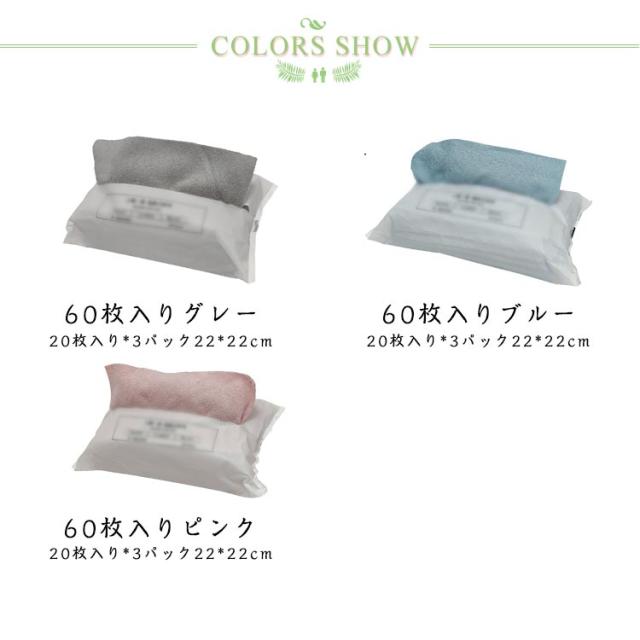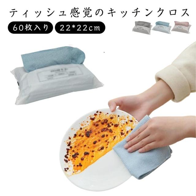 拭きん キッチンタオル ディッシュクロス 使い捨て マイクロファイバー 速乾 マイクロファイバークロス ふきん キッチンクロス 防臭 キッチンクロス タオル 繰り返し使える 22cm*22cm 吸水 台所 北欧 60枚入り キッチンクロス 衛生 抗菌 グレー ピンク ブルー
