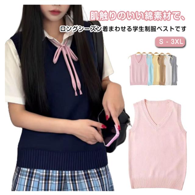 スクールベスト S-3XL 高校生 ニット 女子 制服 チョッキ 春服 中学生 男子 秋服 春 夏 秋 冬 ニットベスト S-3XL ゆったり ノースリーブ 袖なし ニットセーター 無地 Vネック 可愛い 通学 学院風 男女兼用 春夏