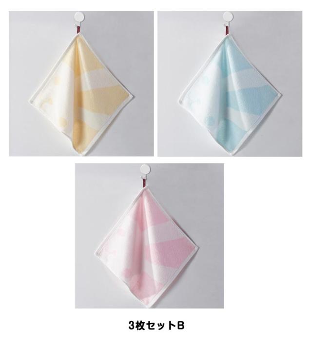 | 3枚セット! ループ付きハンドタオル 肌触りの良い綿!高い吸水性や柔らかい質感で触り心地もよく、毎日使いたくなるようなタオルです。 ループ付で保育園や幼稚園で大活躍! | |