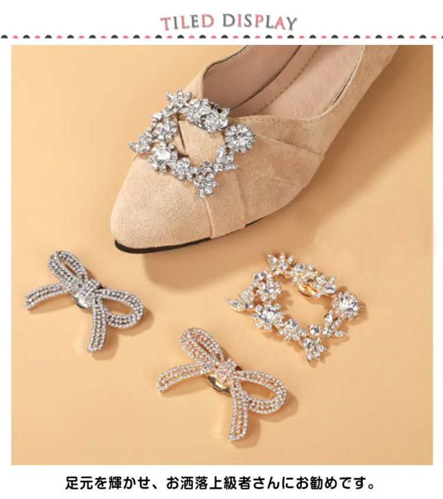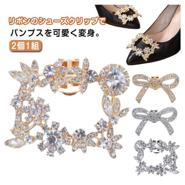 シューズクリップ 2個1組 シューズアクセサリー グリッター クリップ 靴クリップ パンプス 靴飾り 結婚式 四角 リボン ビジュー 入学式 花嫁 2個1組 シュークリップ ビジュークリップ ジュエルクリップ