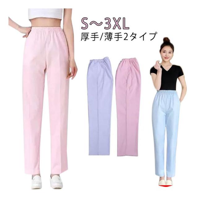 | S〜3XL!厚手/薄手2タイプ さらりと着心地よくナースウェア ウエスト総ゴムで履き心地も楽らく! 両サイドにはスマホやメモ帳などが入るポケットが付いています。 | |