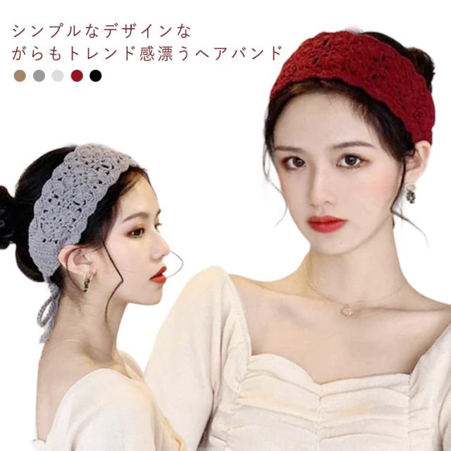 ワイド ヘアバンド レディース ヘッドバンド レース ターバン クロシェ編み 髪飾り 森ガール 幅広 ヘアターバン ヘアターバン ヘアアクセサリー アジアン おしゃれ 民族 アウトドア 女性 まとめ髪 ベージュ グレー アイボリー ワインレッド