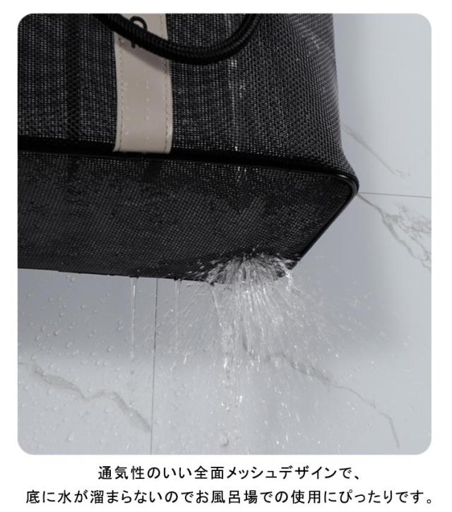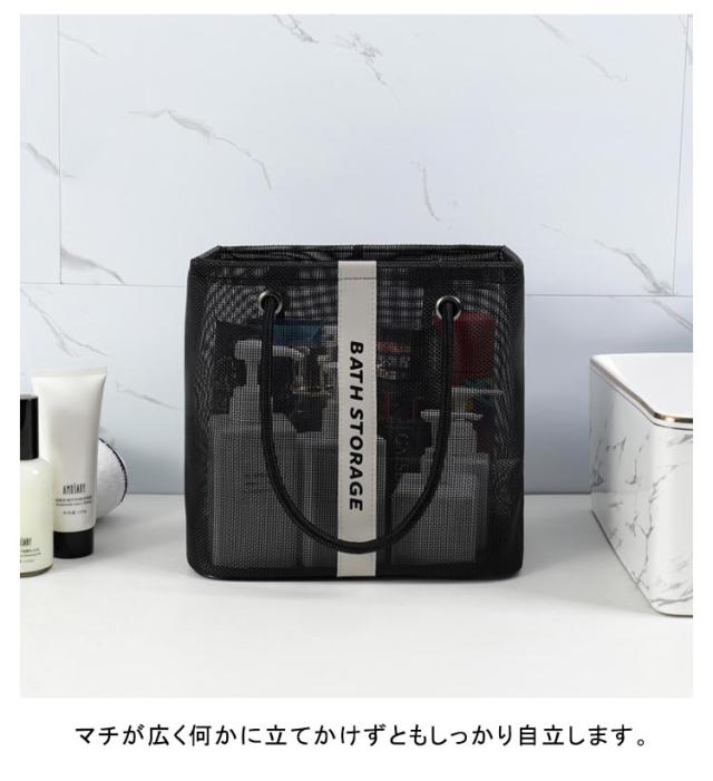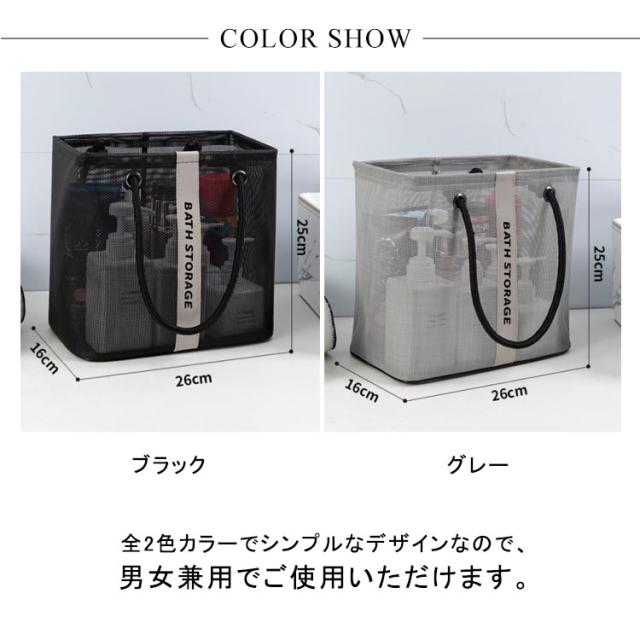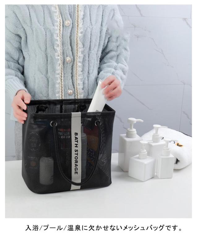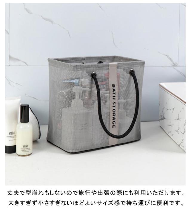 | 入浴/プール/温泉に欠かせないメッシュバッグです。 通気性のいい全面メッシュデザインで、底に水が溜まらないのでお風呂場での使用にぴったりです。 マチが広く何かに立てかけずともしっかり自立します。 マチがひろいのでシャンプーボトルやボディーソープ、洗顔料や厚みのあるスポンジタオルも入ります。 丈夫で型崩れもしないので旅行や出張の際にも利用いただけます。 大きすぎず小さすぎないほどよいサイズ感で持ち運びに便利です。 全2色カラーでシンプルなデザインなので、男女兼用でご使用いただけます。 | |
