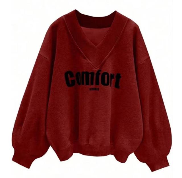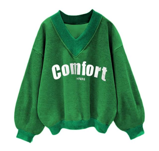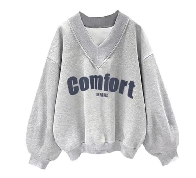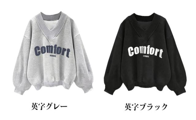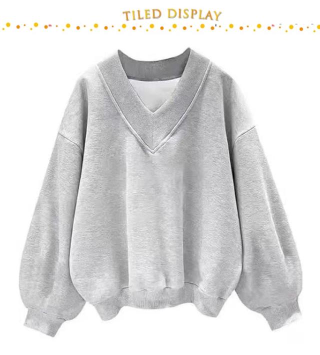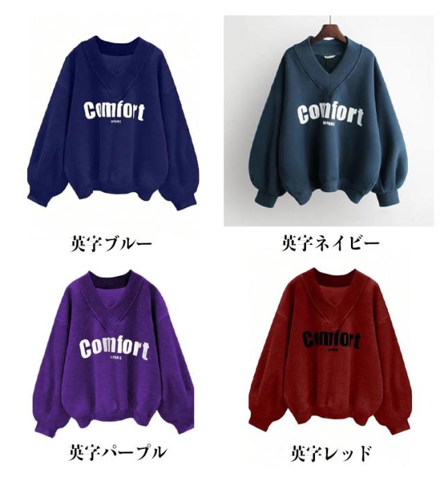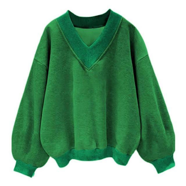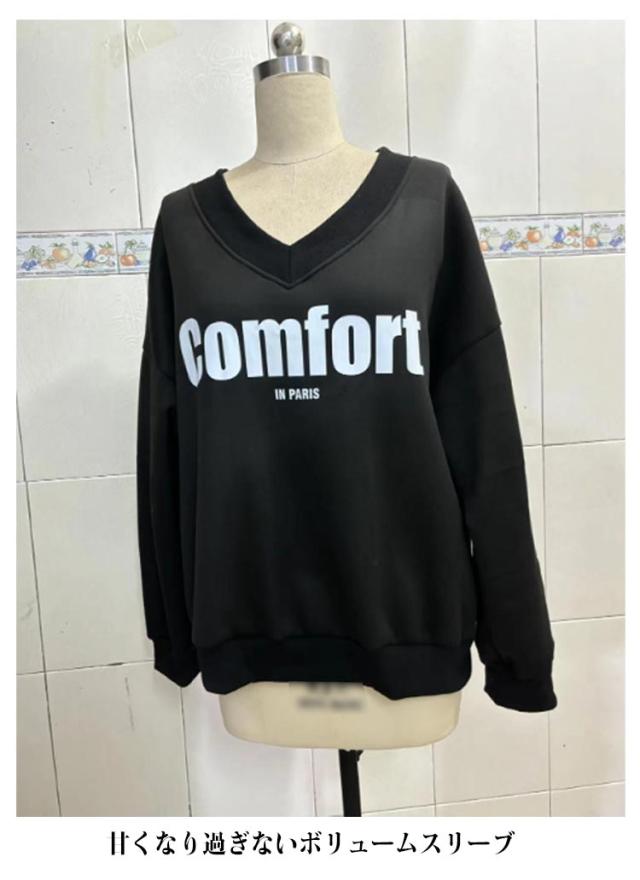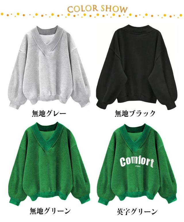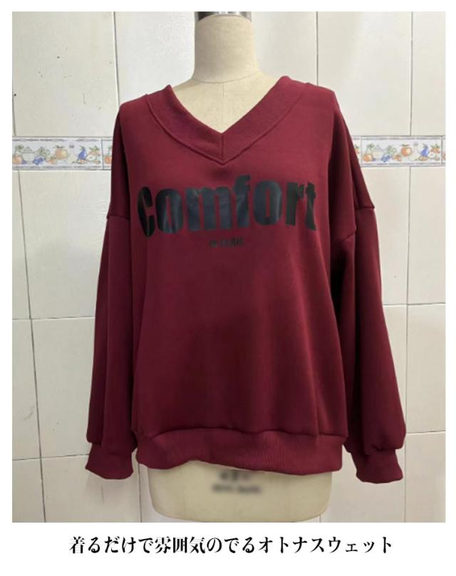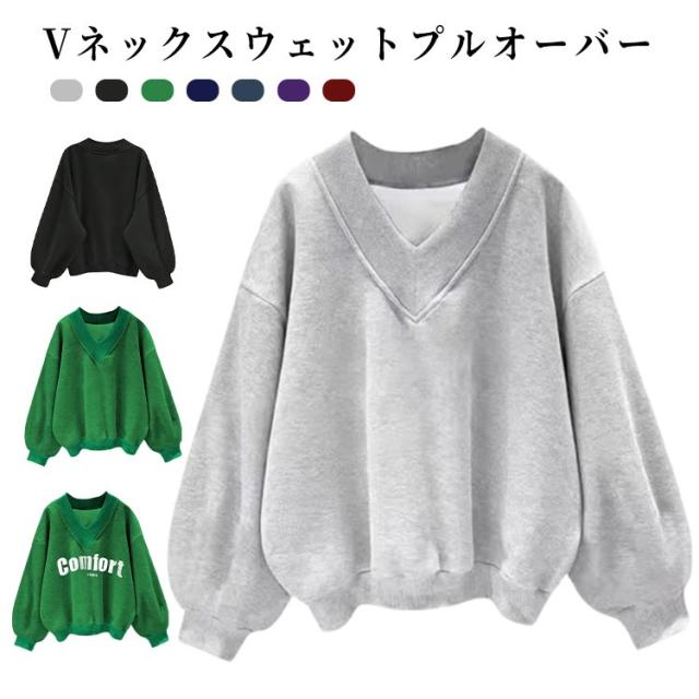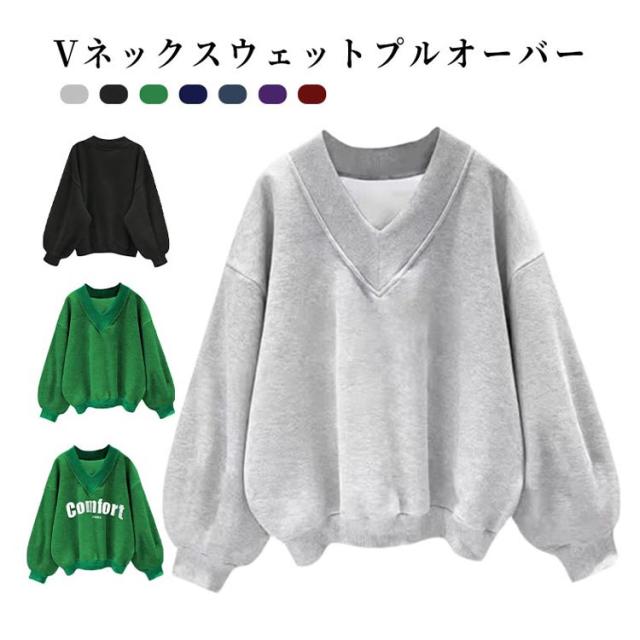 長袖 ドロップショルダー プルオーバー トップス スウェット Vネック レディース ボリューム袖 トレーナー スエット きれいめ カジュアル お出かけ ルーズ ゆったり スウェット 着回し 春