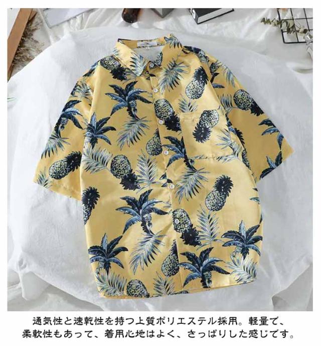 半袖 カジュアルシャツ 大きいサイズ アロハシャツ レトロ パイナップル柄 ハワイアン 半袖シャツ オープンカラー レディース アロハシャツ ストリート 開襟シャツ メンズ リゾート カジュアルシャツ 夏物 ネイビー 薄手 羽織り 春
