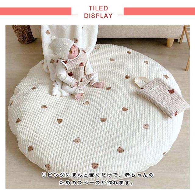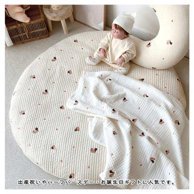| ラウンド型がかわいいキルティングマット リビングにぽんと置くだけで、赤ちゃんのためのスペースが作れます。 お昼寝の時や遊ぶ時など、いつでも広げて使えるので、とても便利で重宝しています。 綿素材を使い、肌にやさしい♪ 出産祝いやハーフバースデー・お誕生日ギフトに人気です。 | |