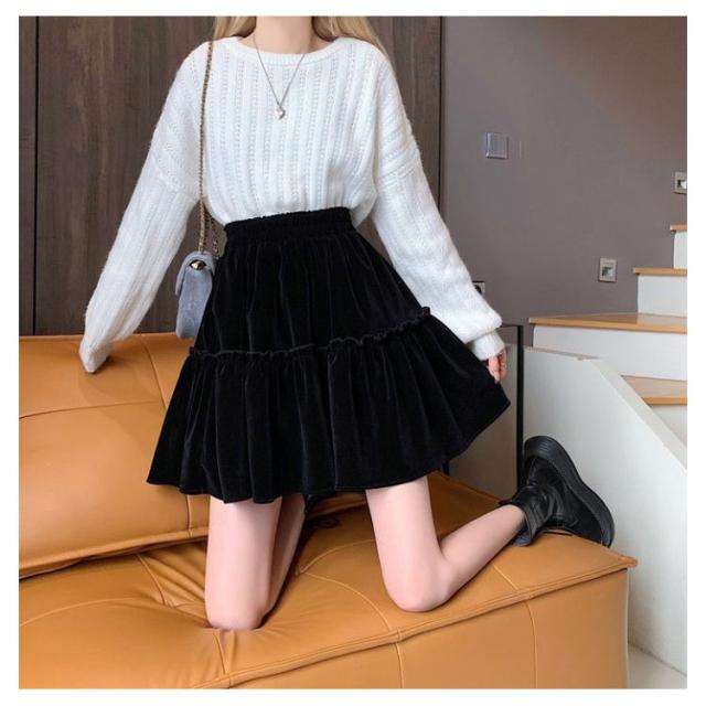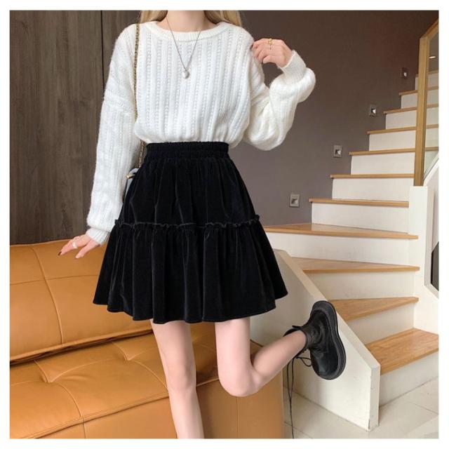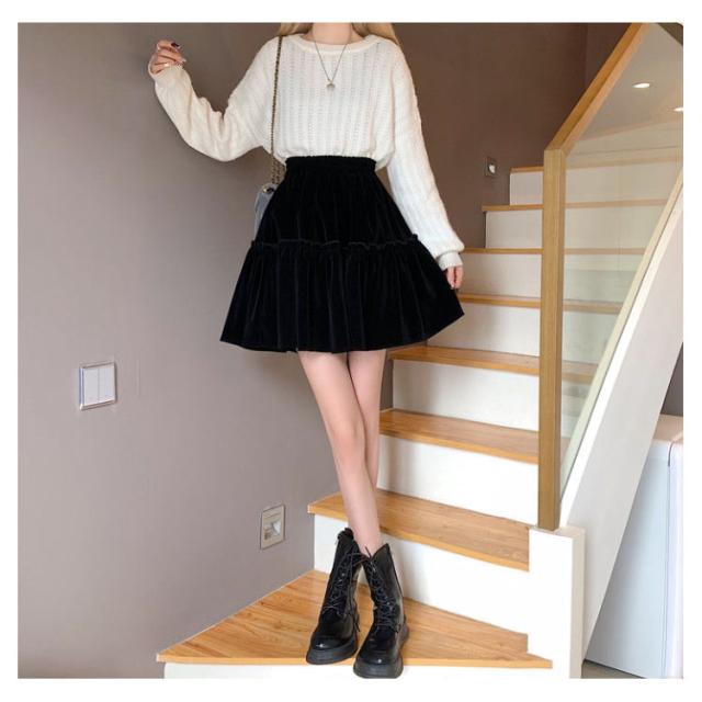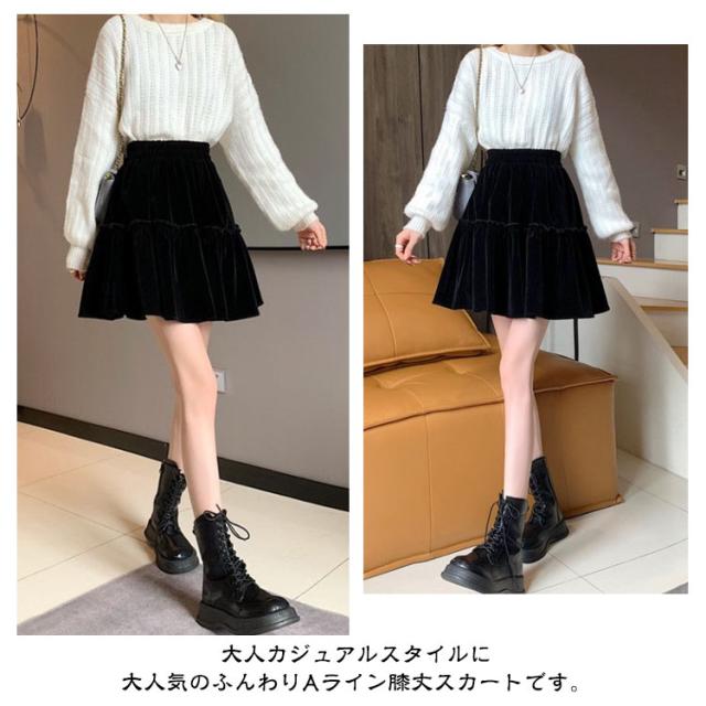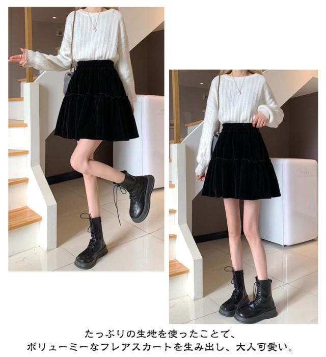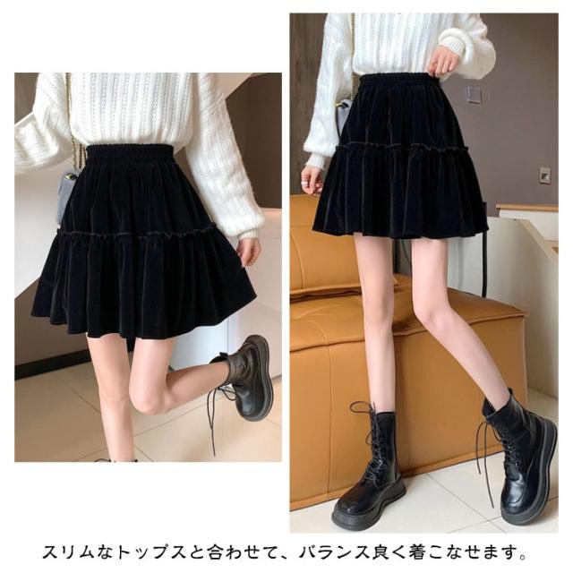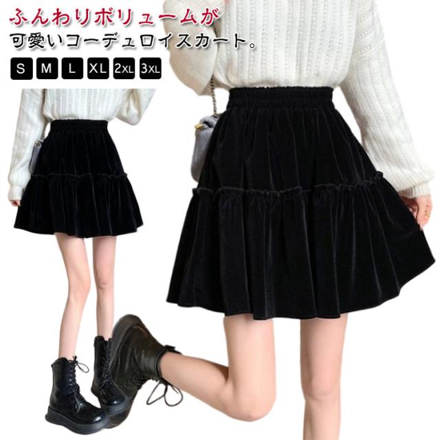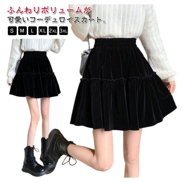 かわいい おしゃれ コーデユロイ レディース スカート ミニ丈 フレアスカート コーデュロイスカート 春秋冬 ミニスカート ウエストゴム シンプル 大人可愛い コーデユロイ Aライン 無地 こなれ感 キュート 黒 高級感