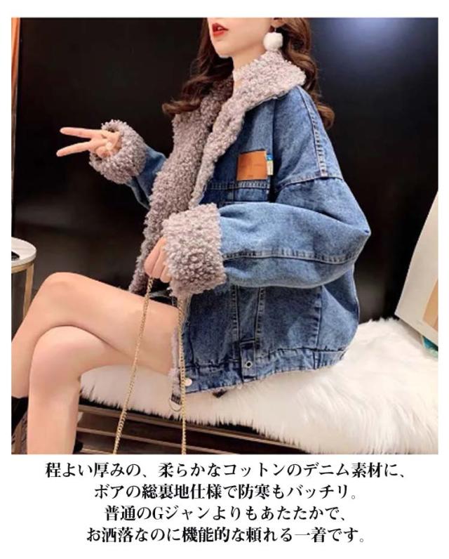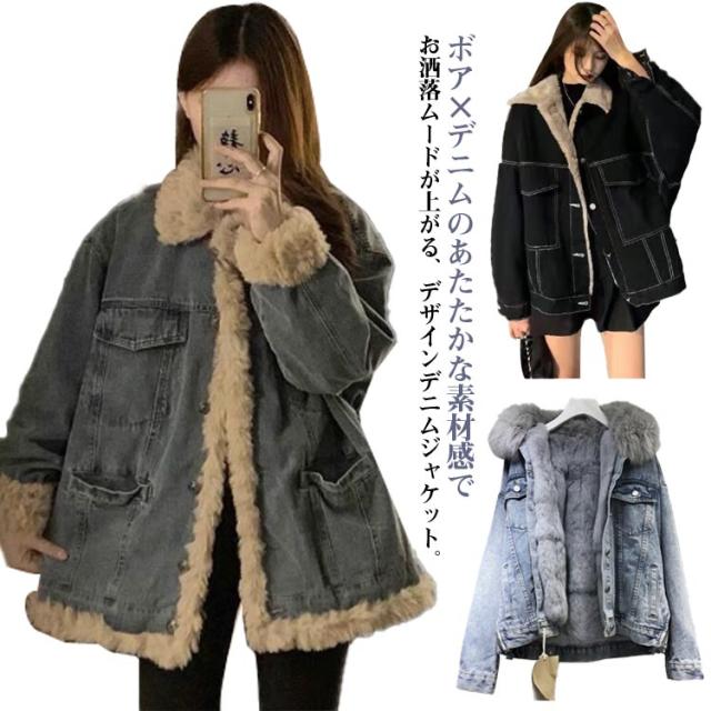 デニムジャケット デニムボアジャケット 秋冬 アウター 長袖 裏ボア ゆったり 厚手 もこもこ 裏起毛 ボアジャケット Gジャン トップス レディース デニムボアジャケット 厚手 カジュアル ボアコート 体型カバー デニムコート 襟付き 防寒 大きいサイズ おしゃれ 通勤 通学
