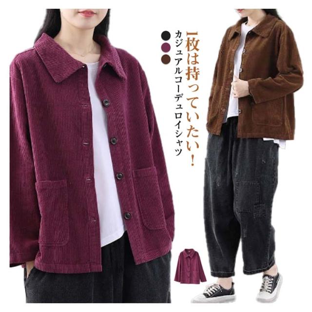 ライトアウター レディース 大人女性 シャツジャケット ジャケット コーデュロイ ゆったり 無地 羽織 春アウター シャツ コーデュロイシャツ ブラウス 大きいサイズ 長袖 体型カバー シャツ おしゃれ カジュアル 通勤 シンプル