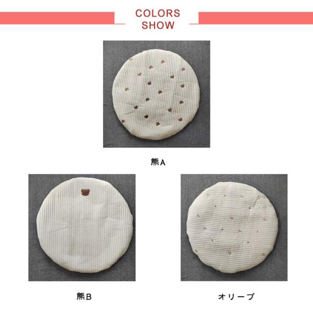 | ラウンド型がかわいいキルティングマット リビングにぽんと置くだけで、赤ちゃんのためのスペースが作れます。 お昼寝の時や遊ぶ時など、いつでも広げて使えるので、とても便利で重宝しています。 綿素材を使い、肌にやさしい♪ 出産祝いやハーフバースデー・お誕生日ギフトに人気です。 | |