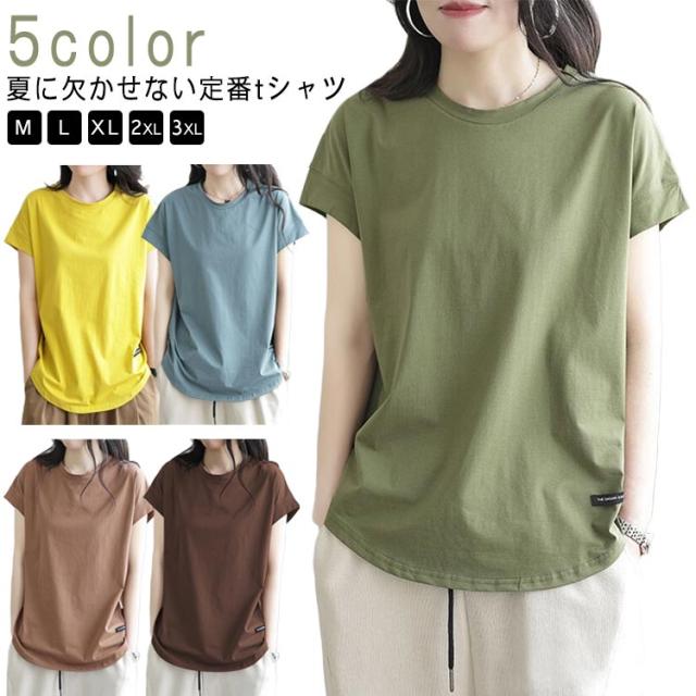 半袖tシャツ 半袖tシャツ Tシャツ 半袖 カジュアル カットソー デイリー ゆったり 大きいサイズ 春夏 薄手 通勤 無地 シンプル トップス ラウンドネック 普段着 着まわし 体型カバー レディース 通学 大人 女性