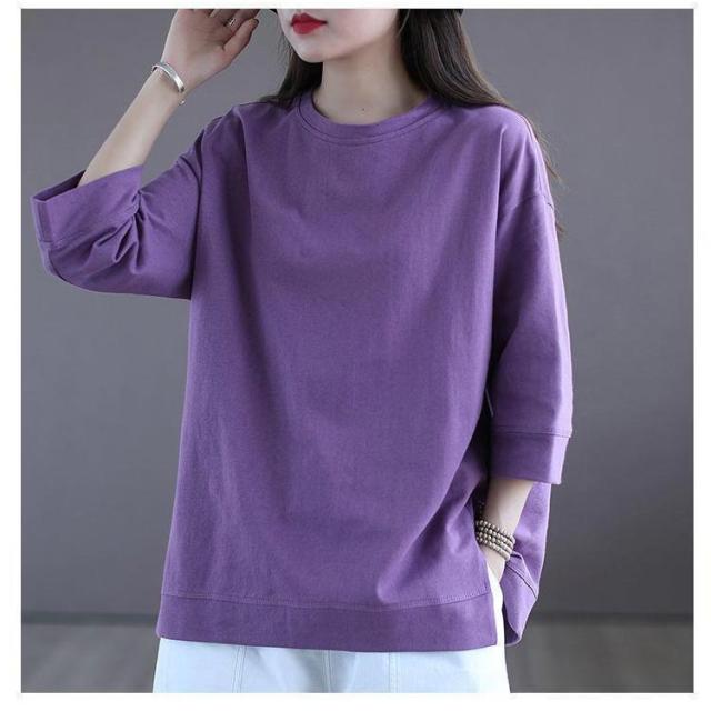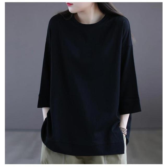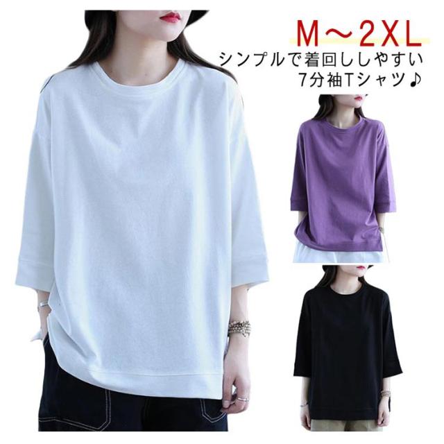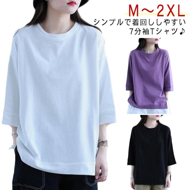 レディース 大きいサイズ 長袖Tシャツ カットソー 無地 tシャツ 大人 丸襟 カジュアル ゆったり 女性用 おしゃれ トップス 7分袖 長袖 クルーネック シンプル 女性 体型カバー 春秋 薄手 インナー Tシャツ ロンT 体型カバー トップス