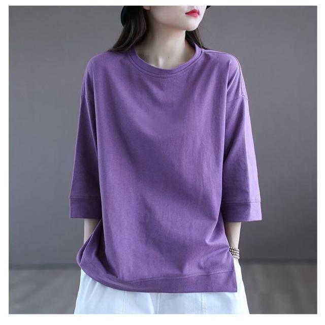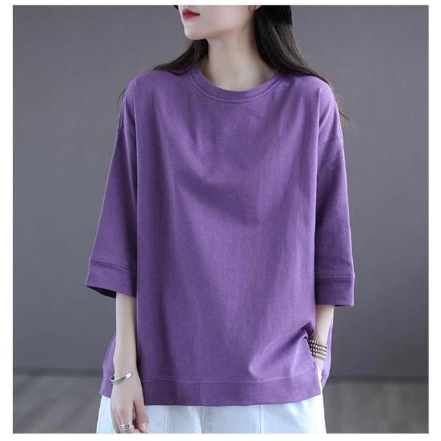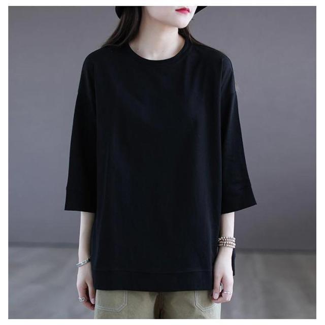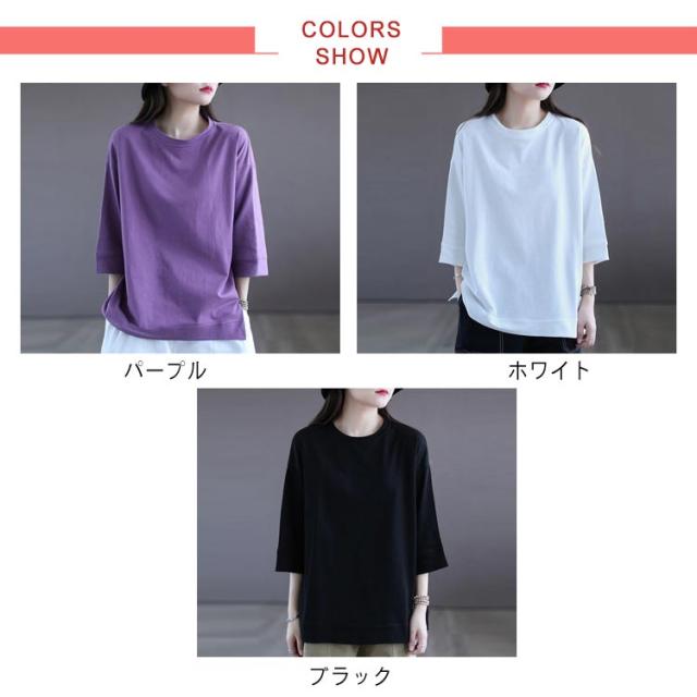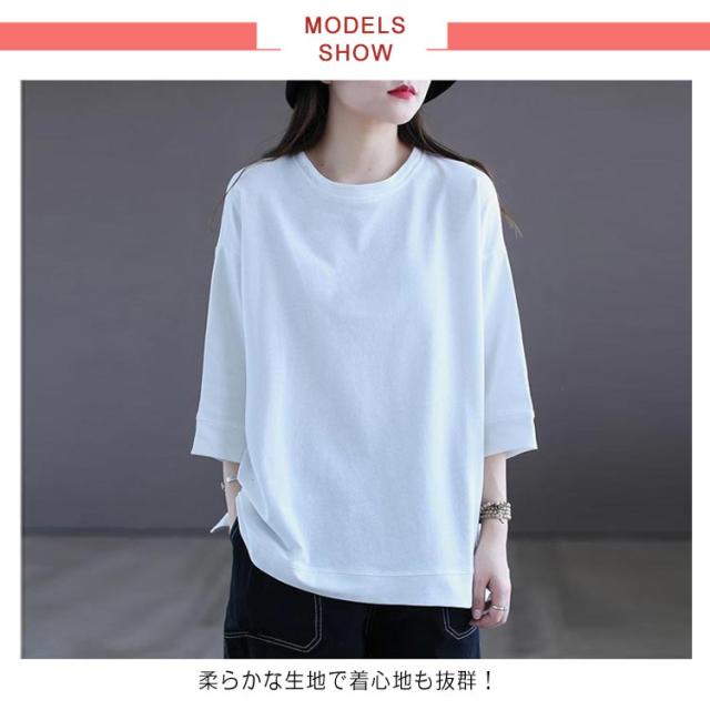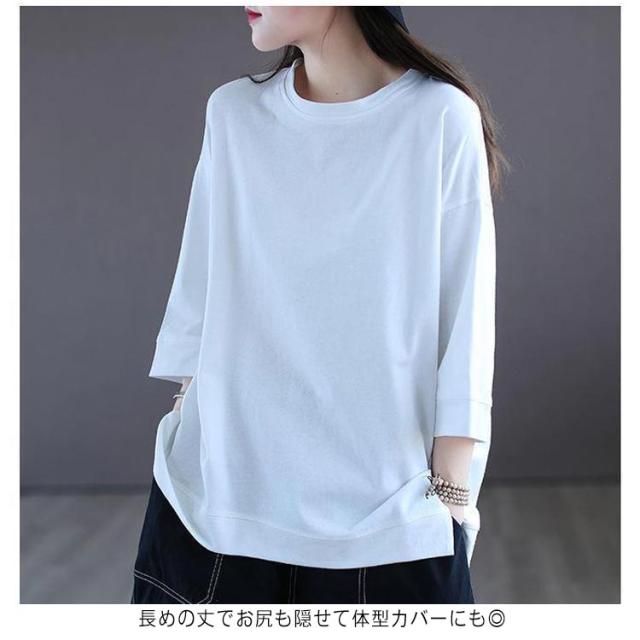 | シンプルで着回ししやすい7分袖Tシャツ♪ 柔らかな生地で着心地も抜群! 長めの丈でお尻も隠せて体型カバーにも◎ シンプルなデザインなので、着回し抜群です! | |