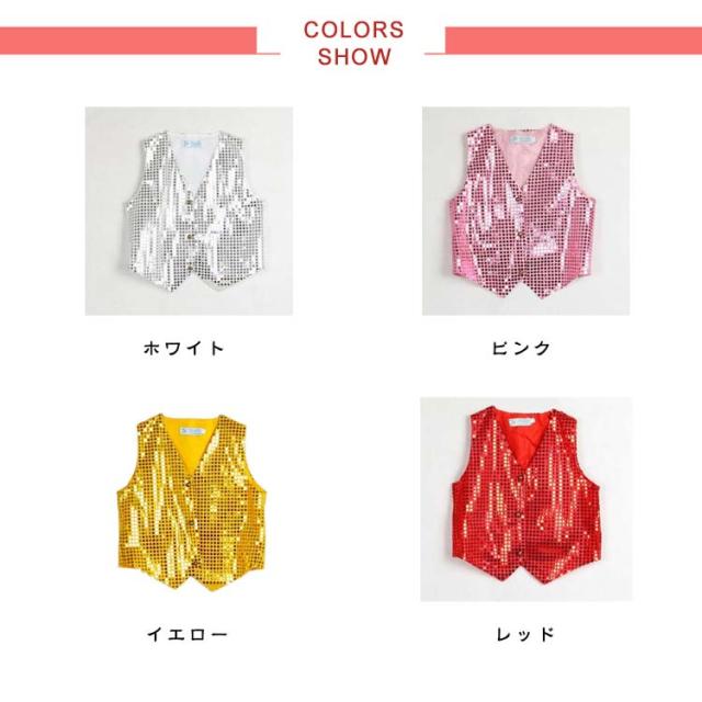 ステージ衣装 ベスト キッズ ダンス衣装 子供服 冬 ショート丈 キッズダンス タンクトップ キラキラ 前開きベスト 舞台衣装 トップス スパンコール 派手 夏 子ども服 キッズ ダンス衣装 衣装 春 ステージ衣装 秋 大きいサイズ