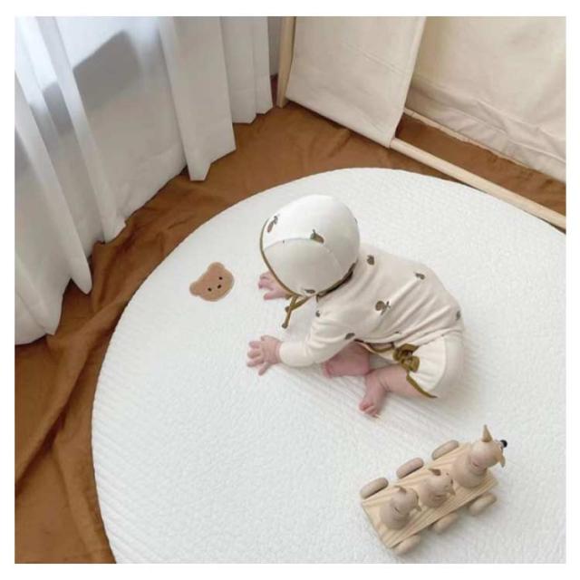 | ラウンド型がかわいいキルティングマット リビングにぽんと置くだけで、赤ちゃんのためのスペースが作れます。 お昼寝の時や遊ぶ時など、いつでも広げて使えるので、とても便利で重宝しています。 綿素材を使い、肌にやさしい♪ 出産祝いやハーフバースデー・お誕生日ギフトに人気です。 | |