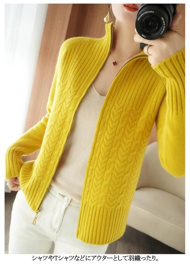 ニットカーディガン ハイネック ニットパーカー レディース ジップアップ セーター ハイネック ケーブル編み 立ち襟 カーディガン ジャケット ケーブル編み 長袖 おしゃれ ジップアップ 40代 50代 30代 ニット カーディガン ジップアップ ざっくりニット