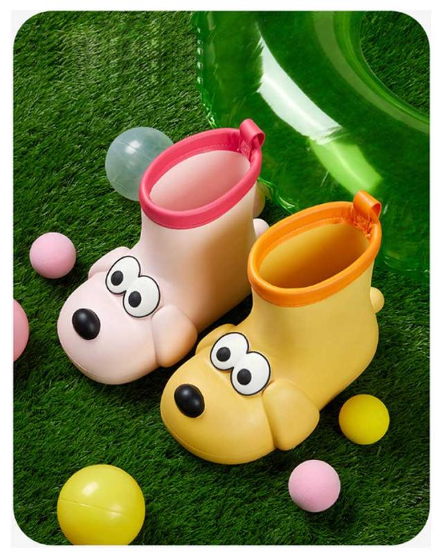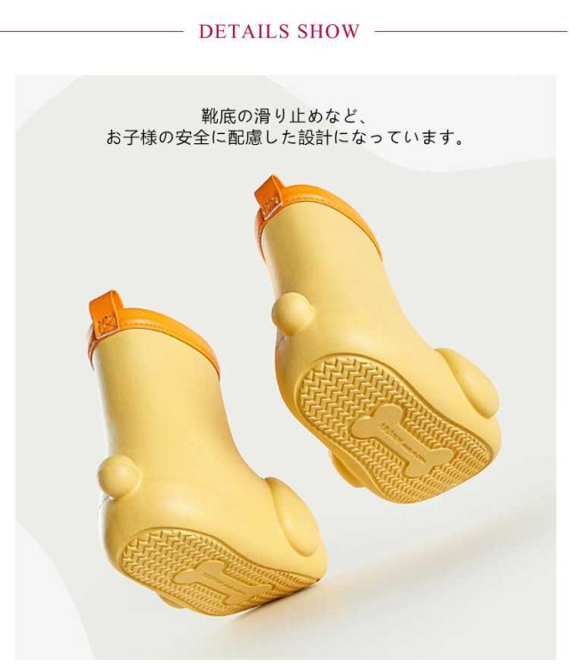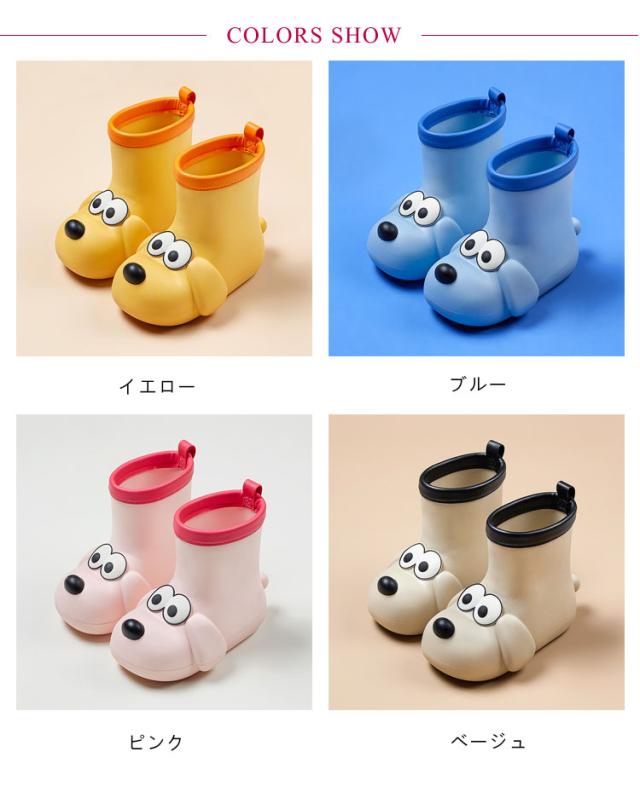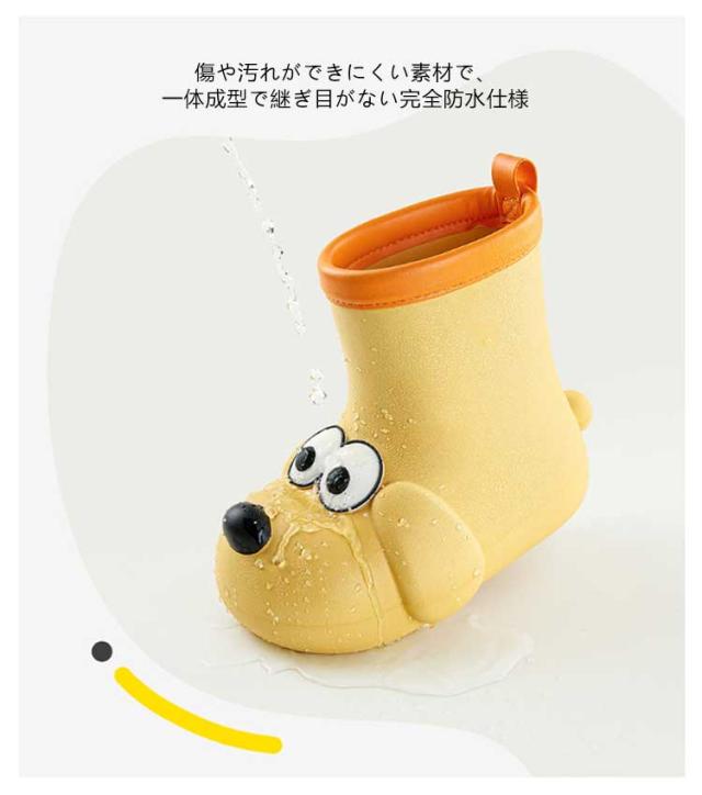 | かわいいワンちゃん形のレインブーツです。【15cm−20cm】 軽量と同時に柔らかさも抜群! 傷や汚れができにくい素材で、一体成型で継ぎ目がない完全防水仕様 靴底の滑り止めなど、お子様の安全に配慮した設計になっています。 雨の日も楽しくなるお勧めの1足です。 | |