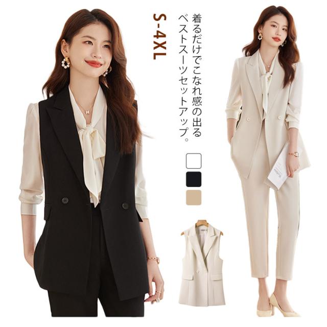 スーツベスト テーパードパンツ パンツセットアップ 入園式 入学式 レディース ママスーツ ロングジレ ベスト 春 通勤 OL パンツセットアップ セレモニー カジュアル フォーマル パンツスーツ 秋 夏