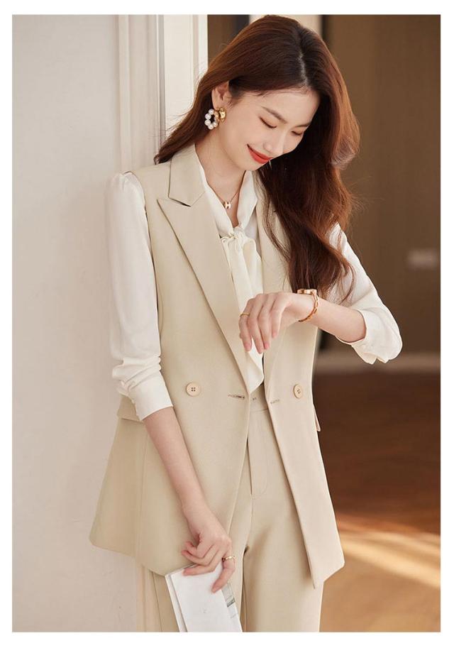 | 着るだけでこなれ感の出るベストスーツセットアップ。 ダブルブレストテーラードジレ、ちょっと長め丈なので体型カバーもかなうのが嬉しいポイント。 すらりと美脚見えテーパードパンツ、大人の女性の魅力を最大限に引き立てます。 インを変えて、春、夏、秋のロングシーズン着回せます。 このセットアップスーツは家庭の洗濯機(ネット使用)で洗えますので、エコでいつも清潔に保てます。 オフィスシーンから七五三、入学式や卒園式・卒業式等のお子様の学校行事、結婚式や二次会、同窓会等のセミフォーマルなシーンまで、幅広いコーディネートにお使いいただける優秀アイテムです。 | |