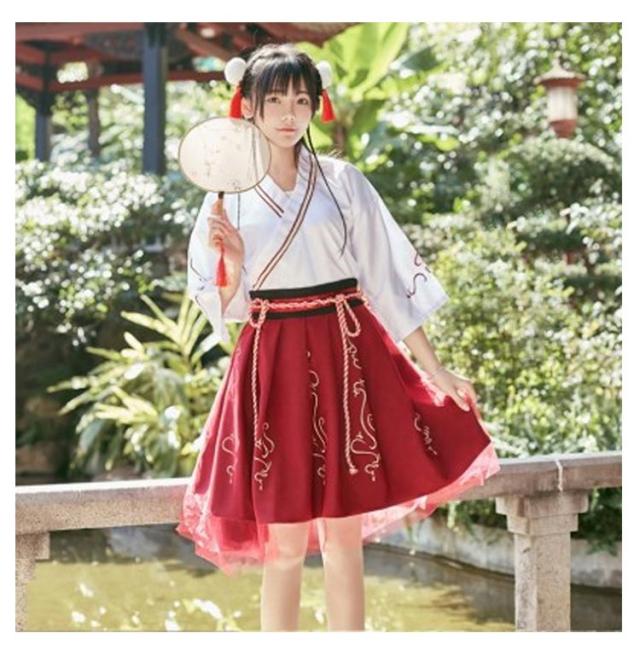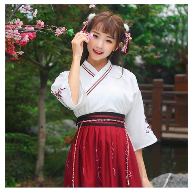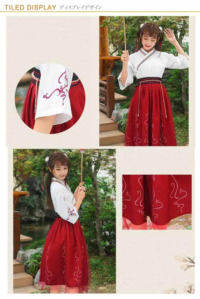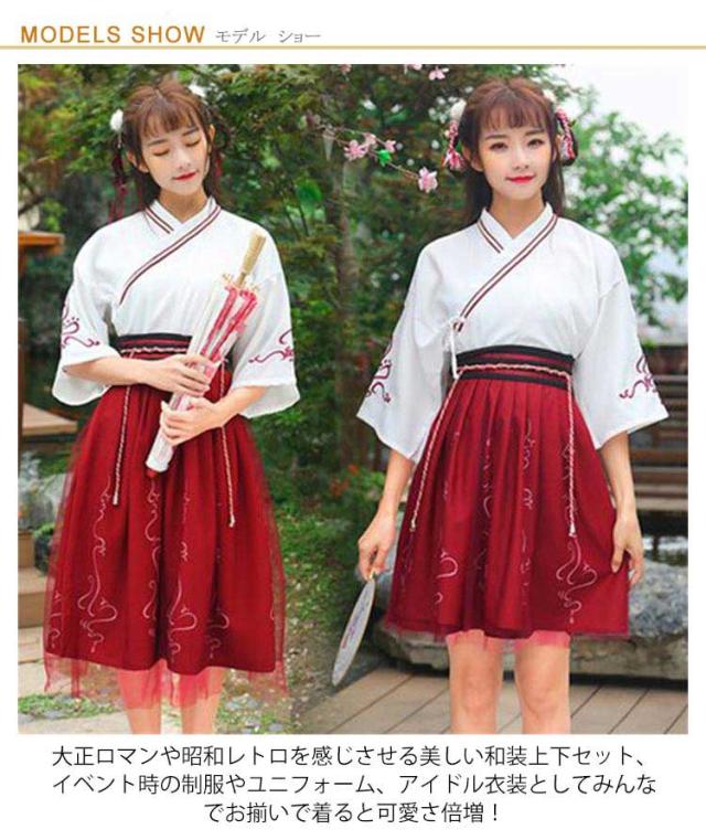 スカート 漢服 唐装漢服 衣装 浴衣 2点セット 仮装 チャイナドレス トップス 和服 着物 ドレス 和式 巫女 刺繍 振袖 ロリータ レディース 可愛い 中華服 宮廷風 古風 ステージ衣装 コスチューム 浴衣 発表会