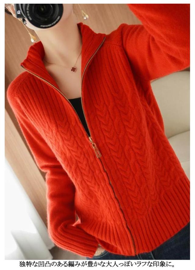 ジップアップ ニットパーカー ケーブル編み レディース ジップアップ ハイネック カーディガン ジャケット ニット セーター ニットカーディガン カーディガン 長袖 おしゃれ 30代 40代 50代 ハイネック ニット 立ち襟 ジップアップ ざっくりニット