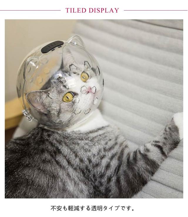 | シャワーや爪切り、目薬差し、美容などの噛み防止、手術後の傷舐め防止用猫用マスク。 不安も軽減する透明タイプです。 前後には通気穴が開いており、通気性も確保して蒸れを防ぐ仕様です。 猫ちゃんのお風呂、爪切り、注射、投薬の場合でよく使うことができます。 また、猫ちゃんの傷舐め、拾い食いや噛みつきを防ぐために口輪を着せるのも必要になります。 | |