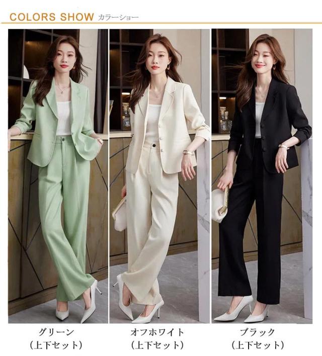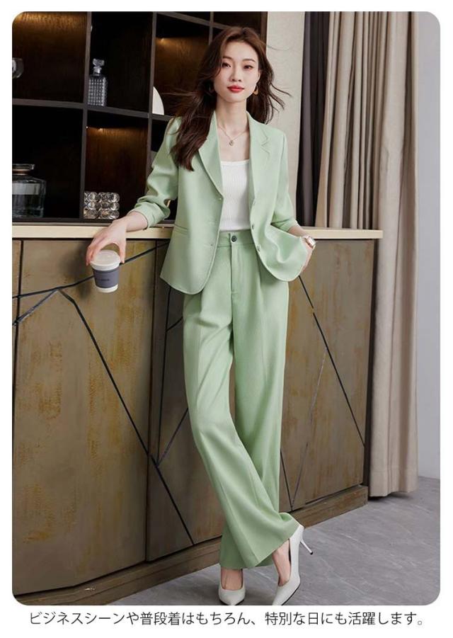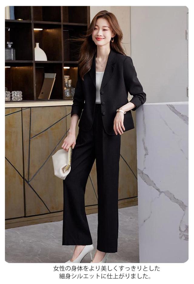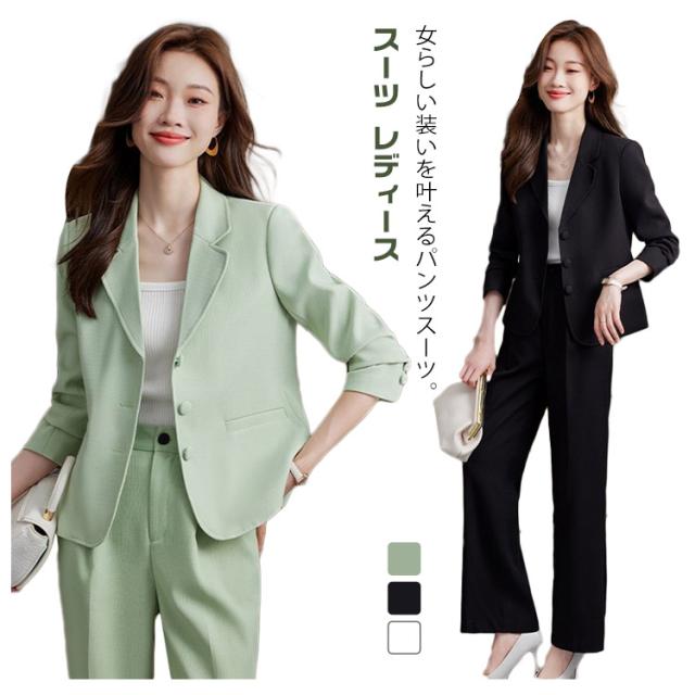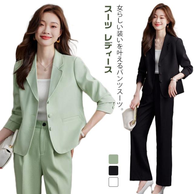 スーツ レディース ビジネススーツ ジャケット ストレートパンツ セットアップ 細身 きれいめ フォーマル テーパード スリム ストレッチ スーツ OL リクルート 就活 セレモニースーツ