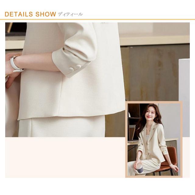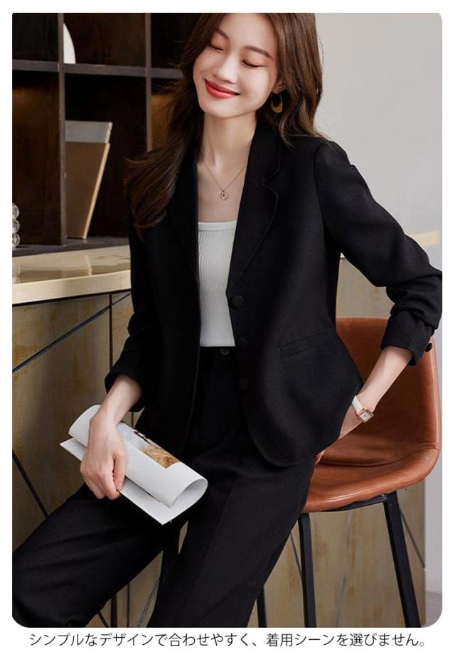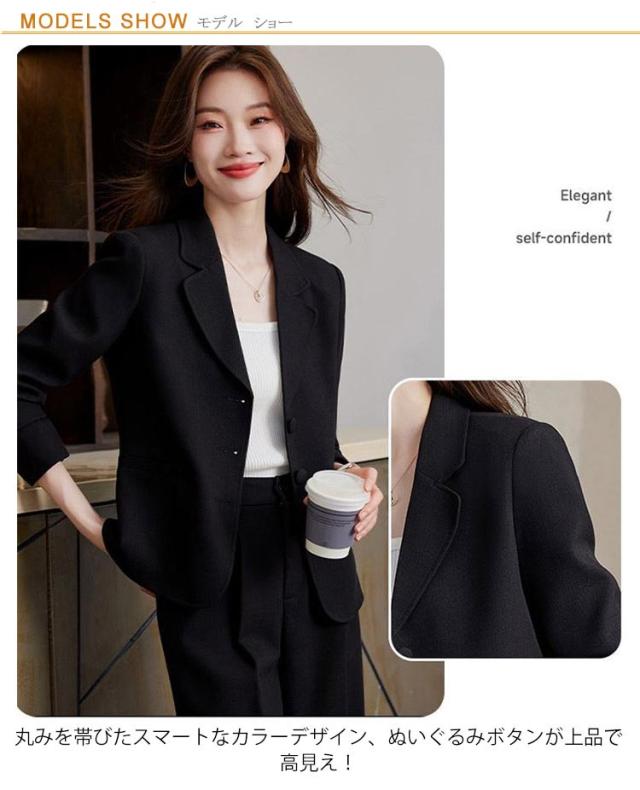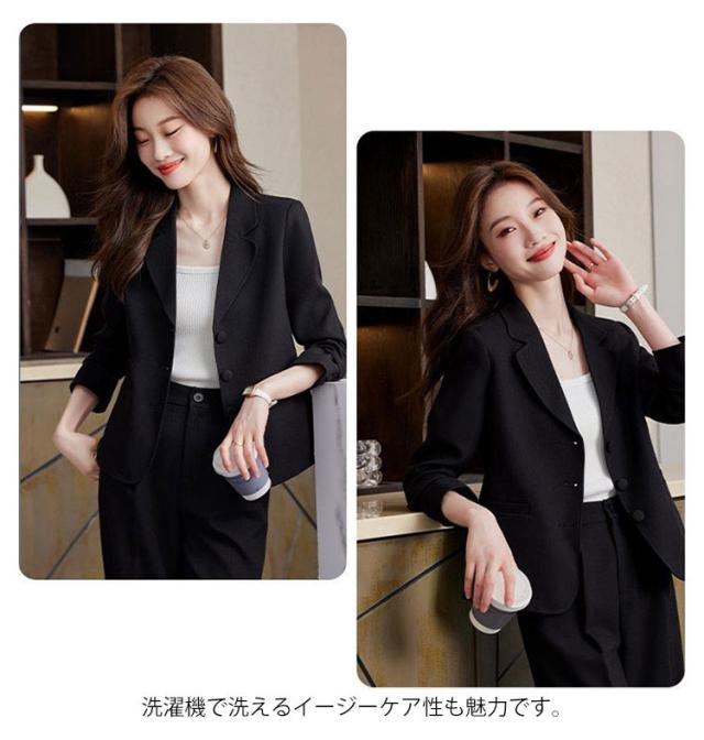 | 女らしい装いを叶えるパンツスーツ。 丸みを帯びたスマートなカラーデザイン、ぬいぐるみボタンが上品で高見え! 女性の身体をより美しくすっきりとした細身シルエットに仕上がりました。 シンプルなデザインで合わせやすく、着用シーンを選びません。 洗濯機で洗えるイージーケア性も魅力です。 ビジネスシーンや普段着はもちろん、特別な日にも活躍します。 | |