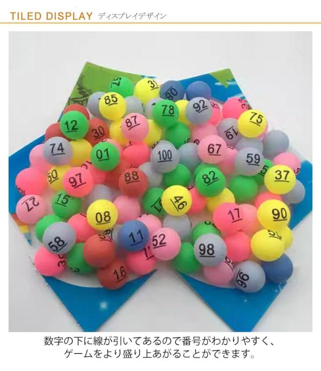 ピンポン玉 数 抽選ボール 抽選 ボール ナンバーボール 40mm 番号入り 1-100 球 数字入り くじ引き 数字 番号 抽選球 下線入り 番号付 ビンゴゲーム ビンゴ用 ナンバー カラーボール 1-100 カラフル パーティー 新年会 抽選会 イベント クジ