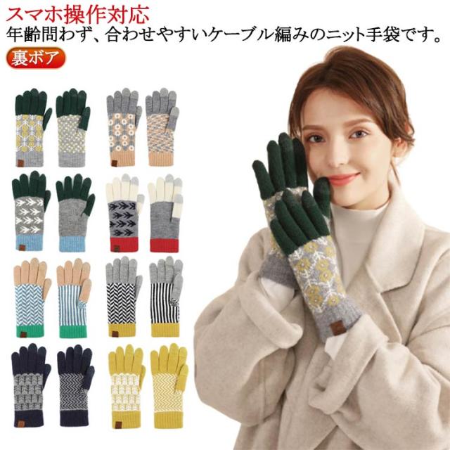 手袋 グローブ タッチパネル スマホ対応 普段使い レディース手袋 レディース手袋 あったか ニット手袋 スマホ手袋 五本指 スマートフォン対応 極暖 暖かい 手ぶくろ 手袋 カジュアル 裏ボア ケーブル編み 散歩 釣り