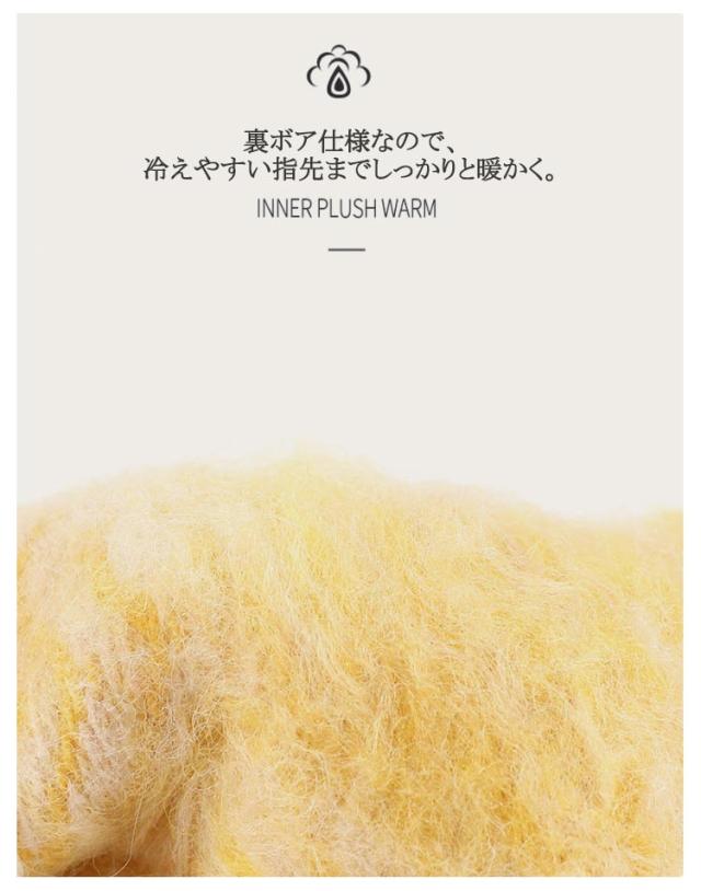 | スマホ操作対応 年齢問わず、合わせやすいケーブル編みのニット手袋です。 裏ボア仕様なので、冷えやすい指先までしっかりと暖かく、 通勤通学や自転車・バイク走行時の冷たい風から守ってくれます。 | |