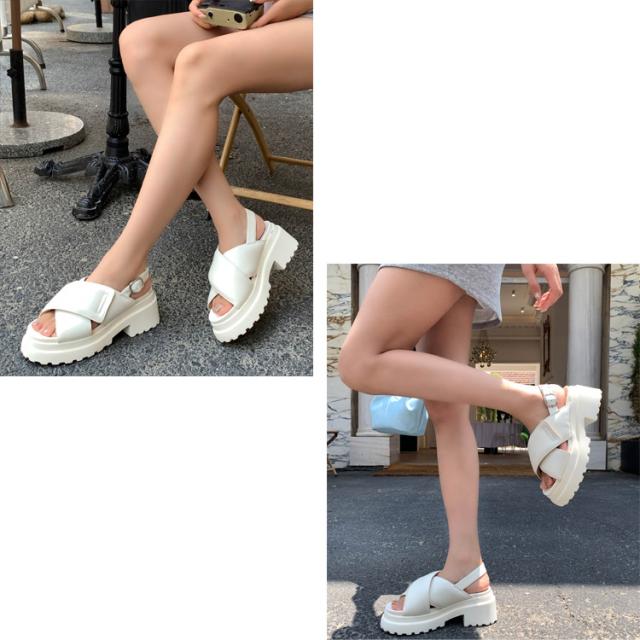 全品送料無料一部除く 日本製 クロスパデット レザー 厚底スポーツサンダル【即納】韓国カジュアル 韓国ガーリー フレンチガーリー リゾート シューズ サンダル パデットベルト 本革 歩きやすい レディース 韓国 Y2Kファッション 韓国ストリート 流行り トレンド かわいい
