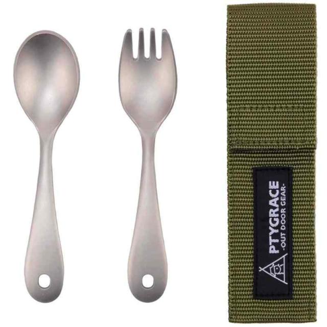 片力商事 PTYGRACE アウトドア チタン スプーン フォーク セット ルリール 収納ケース付 日本製
