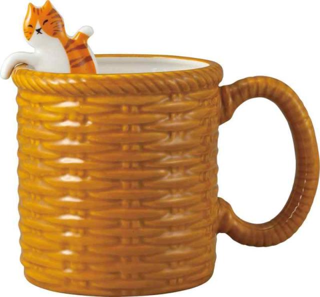 サンアート かわいい食器 「 おうちカフェ ベーシック 」 とらねこのティースプーン付 マグカップ 300ml ブラウン SAN2925-2