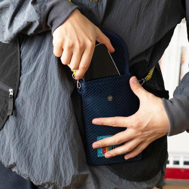 ボディはフカフカと柔らかなメッシュ素材を採用し、スマートフォンやイヤフォンなど必要最低限の小物を収納可能。