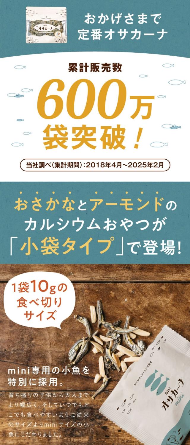 400万袋突破!子と?ものおやつに、午後のおやつに、お酒のおつまみに、レシ?ャーのお供に寄り添う、健康的なアーモント?小魚。