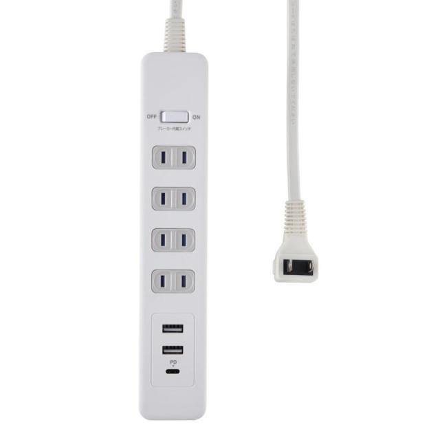 エルパ(ELPA) USB付き 延長コード 電源タップ USB1口 Type-C1口 PD20W WLS-4322SUC(W)