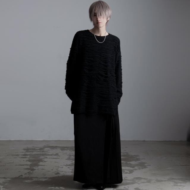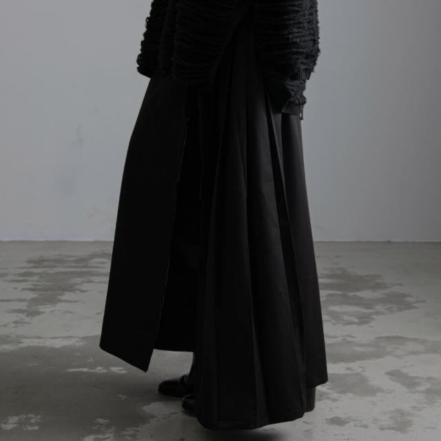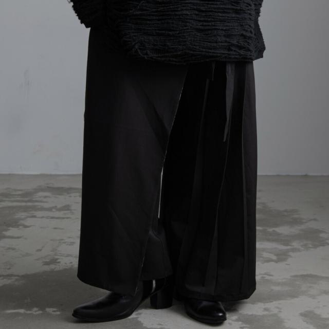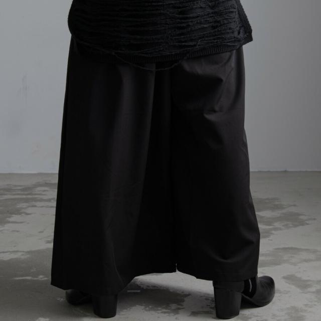 覆い布とプリーツ加工で袴と着物を組み合わせたようなパンツ。