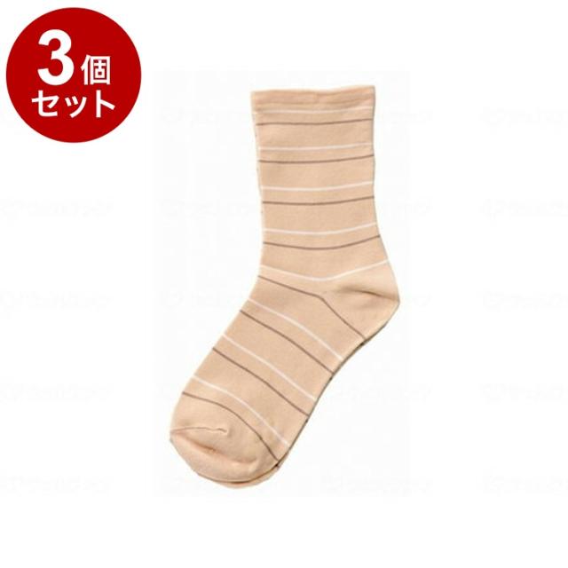 【単品3個セット】神戸生絲 婦人ゴムなし柄すべり止めソックス(ボーダー) ベージュ 22~24cm 3337(代引不可)【送料無料】