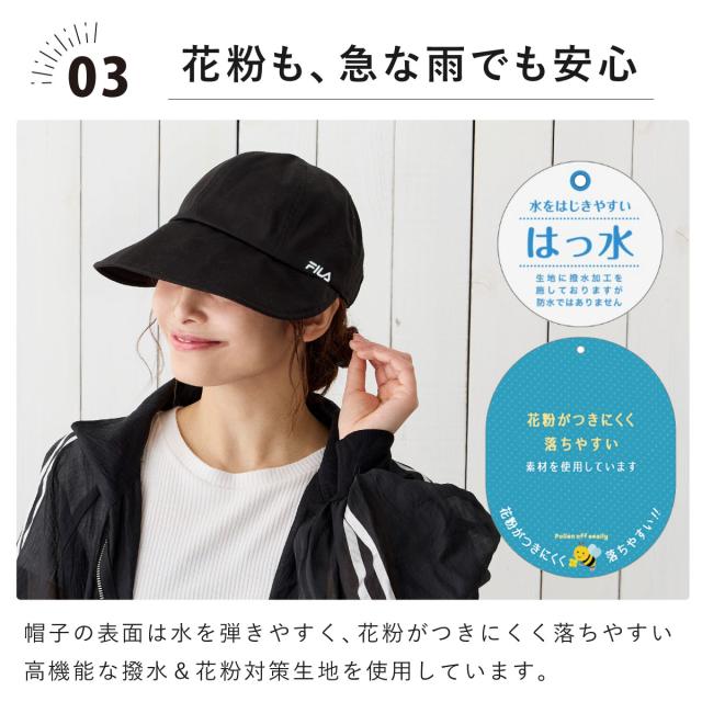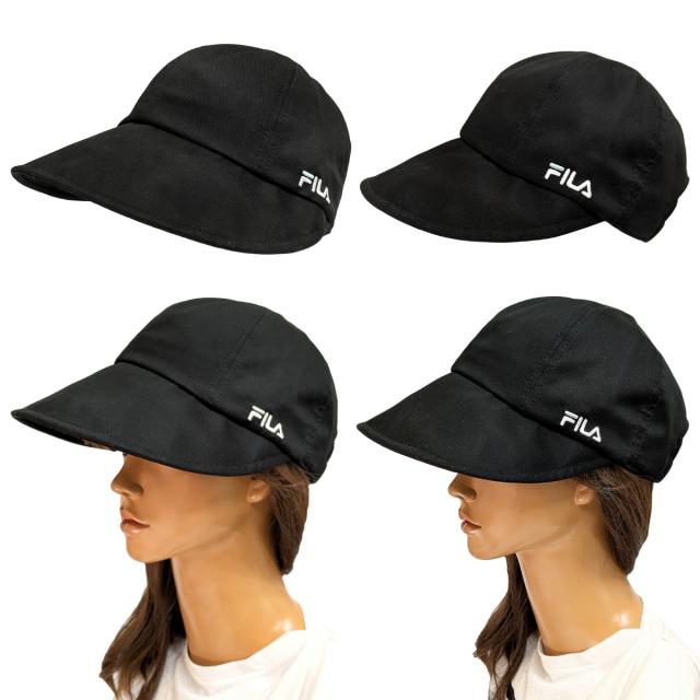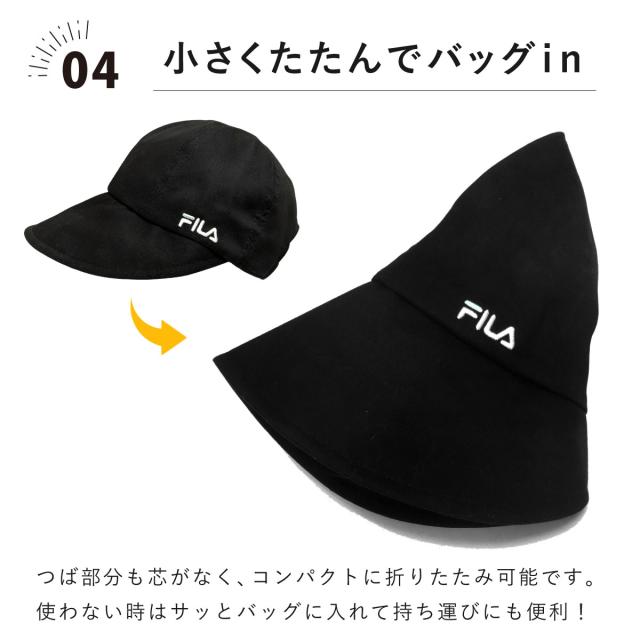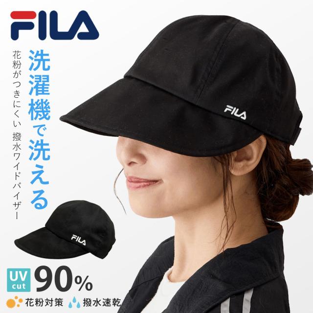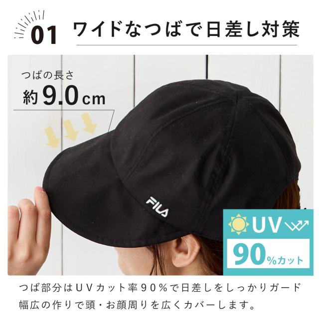 FILA つば広 キャップ UV90%カット 花粉対策 ワイドバイザー 黒 髪を結んだまま 遮光 帽子 レディース 綿 つば9cm 小顔 56-59cm コットン ハット fi-261-013203 メール便は送料無料 被る日傘 洗濯機対応 正規取扱 春夏 軽い お洒落 速乾 プレゼント 即納