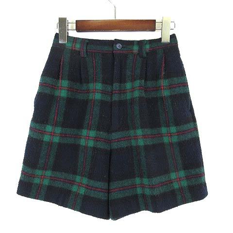 【中古】パンツ ショートパンツ ハーフ ウール ブラックウォッチ チェック 63 黒 ブラック 緑 グリーン 赤 レッド