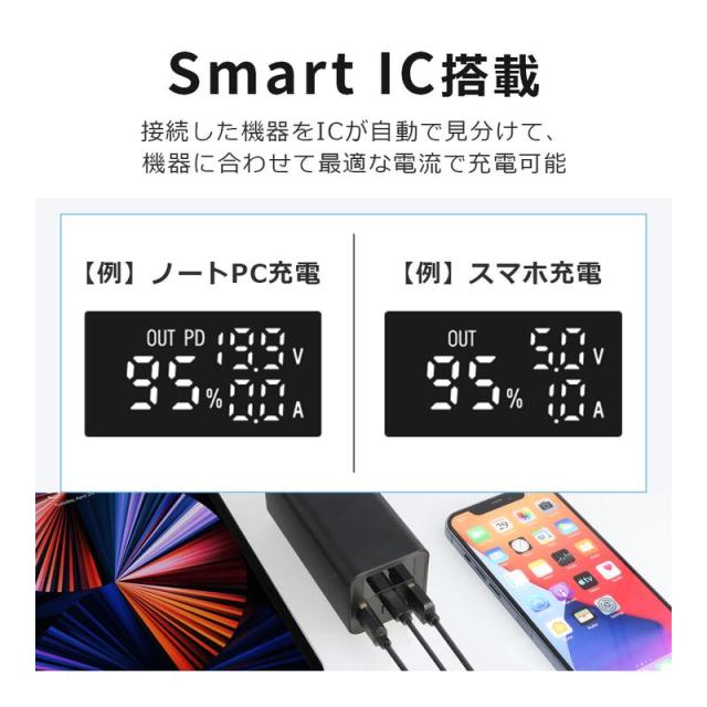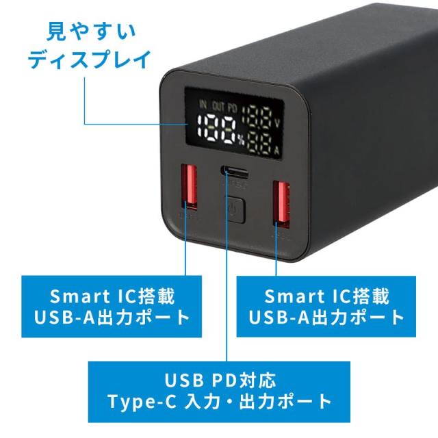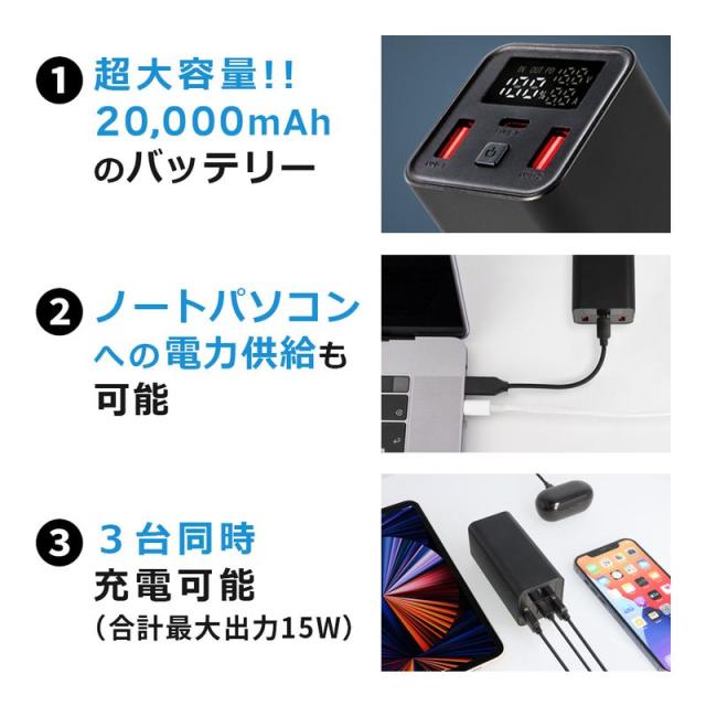モバイルバッテリー 20000mAh 65W PD 急速充電 大容量 スマートIC 3台同時充電 Type-C 入力 残量表示 デジタル ディスプレイ iPhone Android タブレット USB-A USB-C 防災 電源 非常用 PSE認証済み