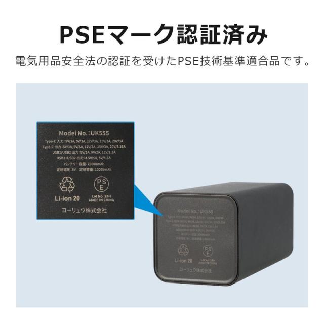 20,000mAhの電池容量なのでiPhone15を約3回以上充電可能。