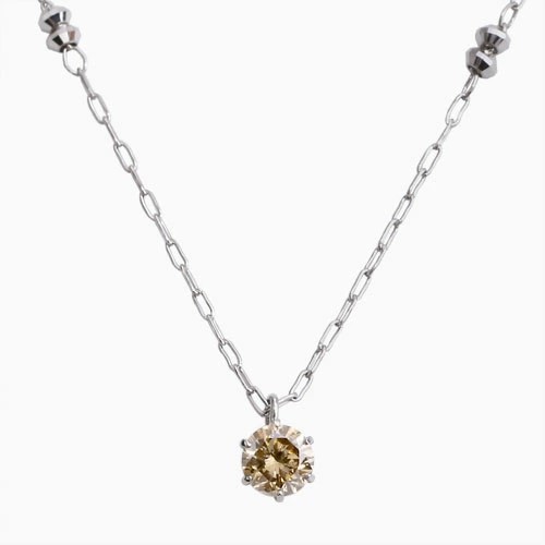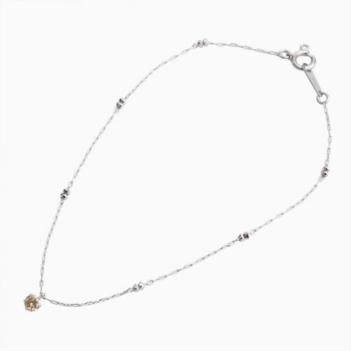 細く繊細な粗目小豆チェーンのベースにステーション状にミラクルカットのミラーボールを配したデザインは可憐で厳か。