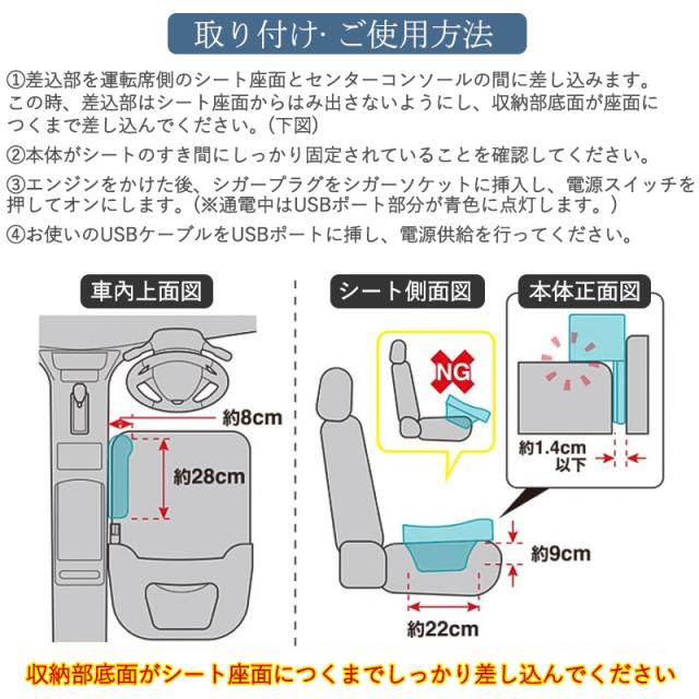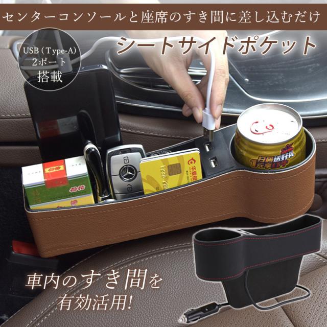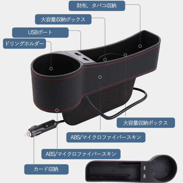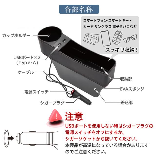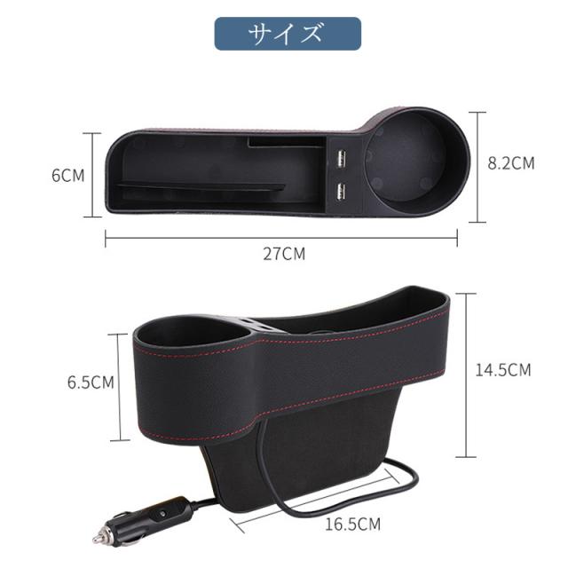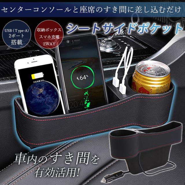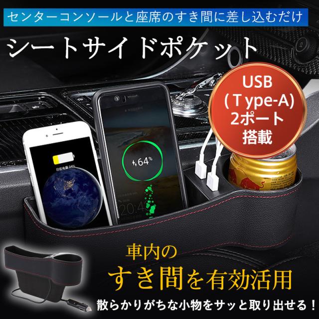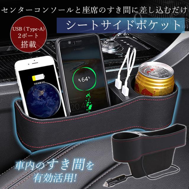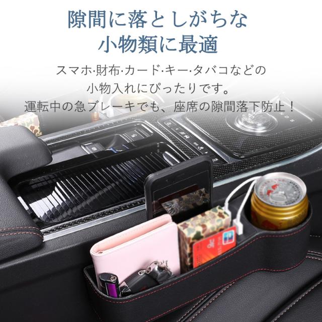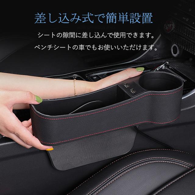 コンソールボックス USB2ポート搭載 車用収納ボックス 隙間 収納 車用 サイド収納ボックス 運転席側用 シートサイド USB付