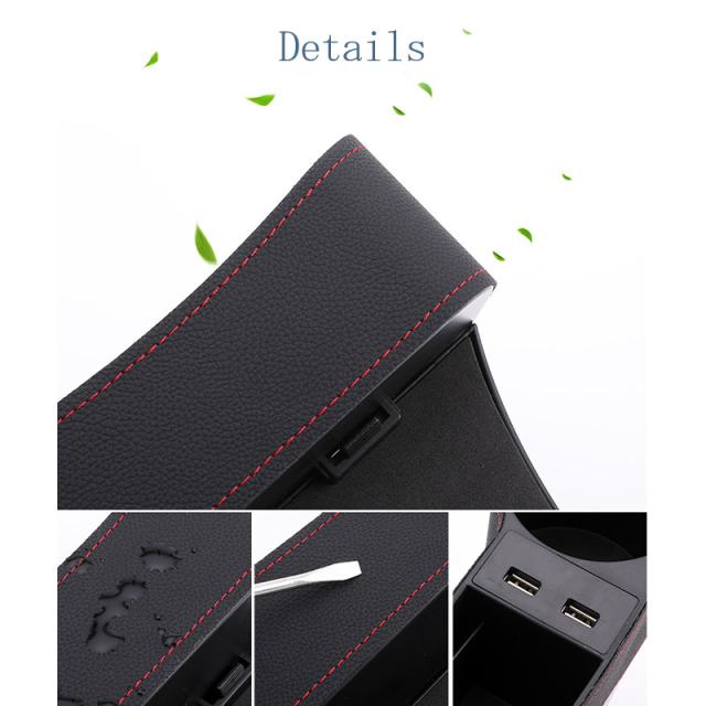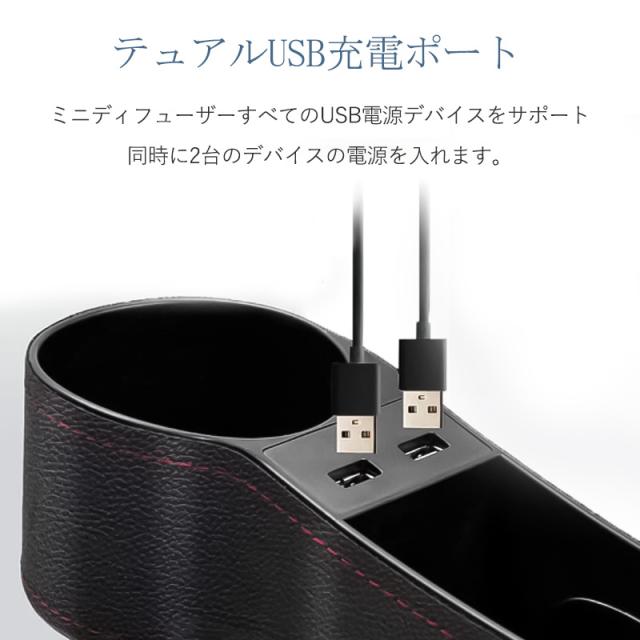 コンソールボックス USB2ポート搭載 車用収納ボックス 車用 納ボックス サイド収納ボックス レザー調 PU 運転席側用 シートサイド 座席 USB付車載ポケット USB充電ポート 車用サイド収納ボックスシートポケット カー用品 助手席 運転席 物の落下を防ぐ 取付簡単 車用 収納ケース 小物整理